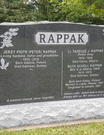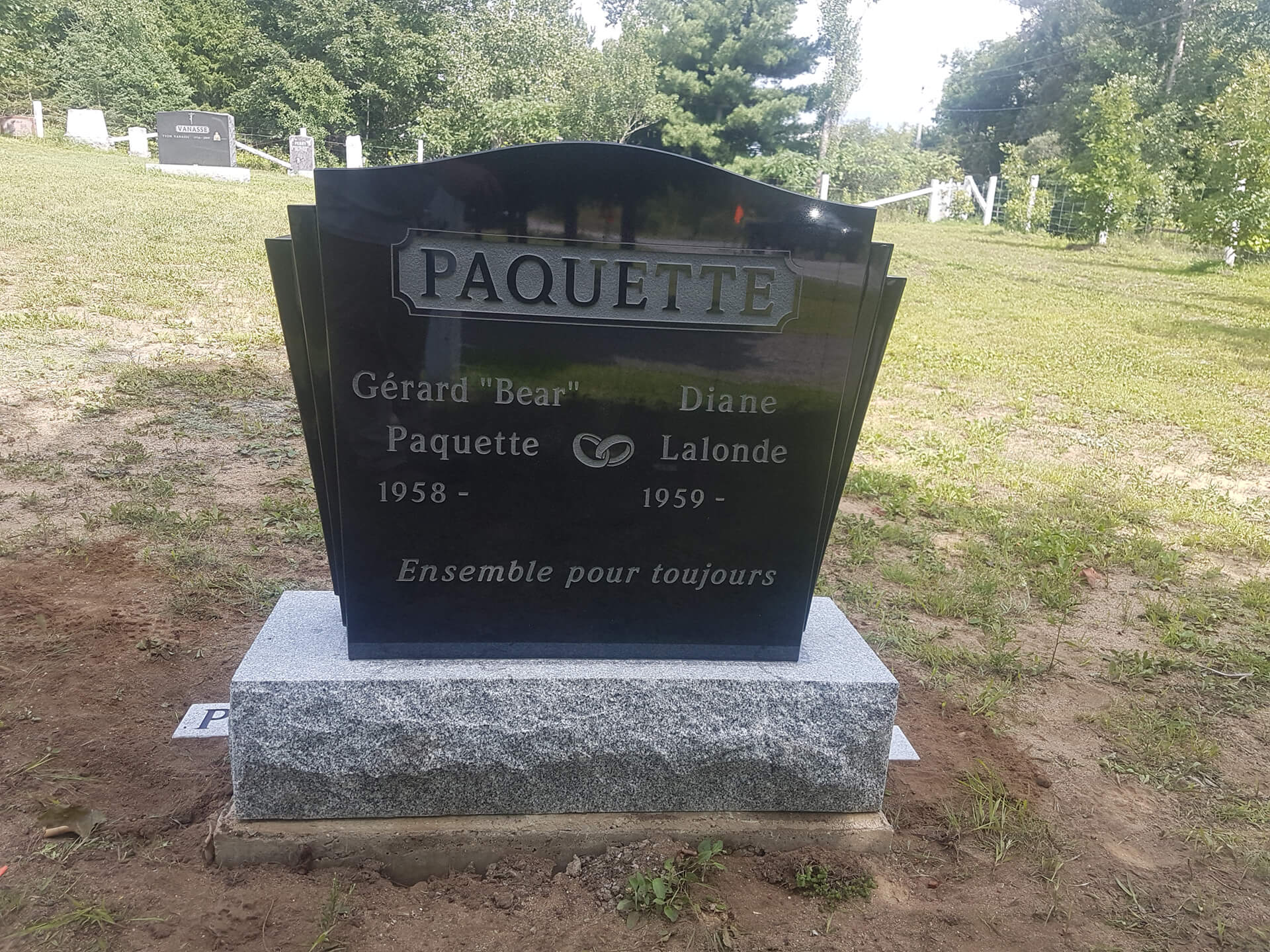 Nos créations Retour au galerie d'images Nous répondrons vos questions you have au sujet de la conception, le façonnage et l’installation de monuments. Disponible 7 jours par semaine. Appelez maintenant: 819-665-1173 Nous rejoindre